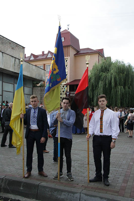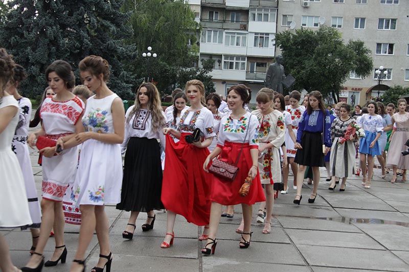 Різнобарв`я вишиванок не змогло залишити байдужим нікого з присутніх. Дружною колоною на чолі з директором канд. мед. наук Л.С.Біликом, шанованими гостями та викладачами усі випускники рушили до Катедрального Собору Верховних Апостолів Петра і Павла, щоб помолитися за мирне майбутнє України і отримати благословення на щасливу долю випускників.